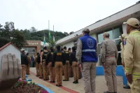 Na sequencia aconteceu a passagem de serviço das guarnições da Polícia e Bombeiro militares, instituições presentes no dia a dia da população duovizinhense as quais simbolizam, através da sua farda e sua essência, a organização militar respeito às leis, normas e símbolos de nosso país.