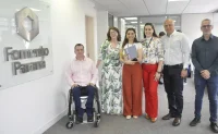 Já na reunião com a Fomento Paraná, representada por Mayara Puchalski (Diretora Administrativo-Financeira), Charles Bueno (Gerente de Operações do Setor Público), Claudio Pacheco (Assessor do Setor Público) e Cláudia de Azevedo Nicolau (Assessora Técnica do Gabinete do Deputado Federal Paulo Litro e do Deputado Estadual Adão Litro), o foco foi a viabilização de linhas de crédito e apoio financeiro voltadas à construção de unidades habitacionais com valores acessíveis e compatíveis com a realidade econômica da população duovizinhense.