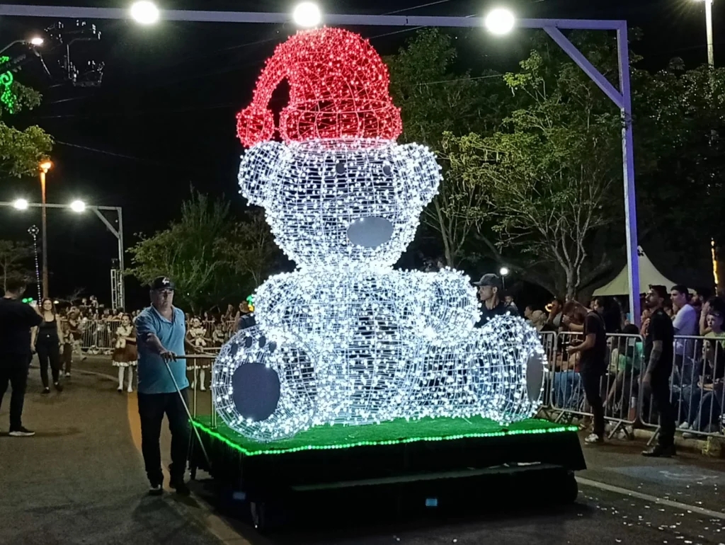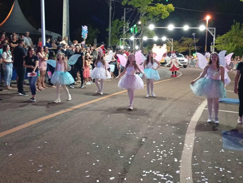 O evento, organizado pela Secretaria de Educação e Cultura, com apoio da Associação Natal Iluminado, contou com o patrocínio da Secretaria de Turismo do Paraná, transformou o parque em um cenário de sonho: luzes, cores, música e personagens encantaram crianças, jovens e adultos. Os figurinos impecáveis e a evolução das equipes arrancaram aplausos do início ao fim. Carros alegóricos cuidadosamente produzidos desfilaram exibindo cenas clássicas do imaginário natalino, emocionando o público com seus movimentos, detalhes e atmosfera mágica.